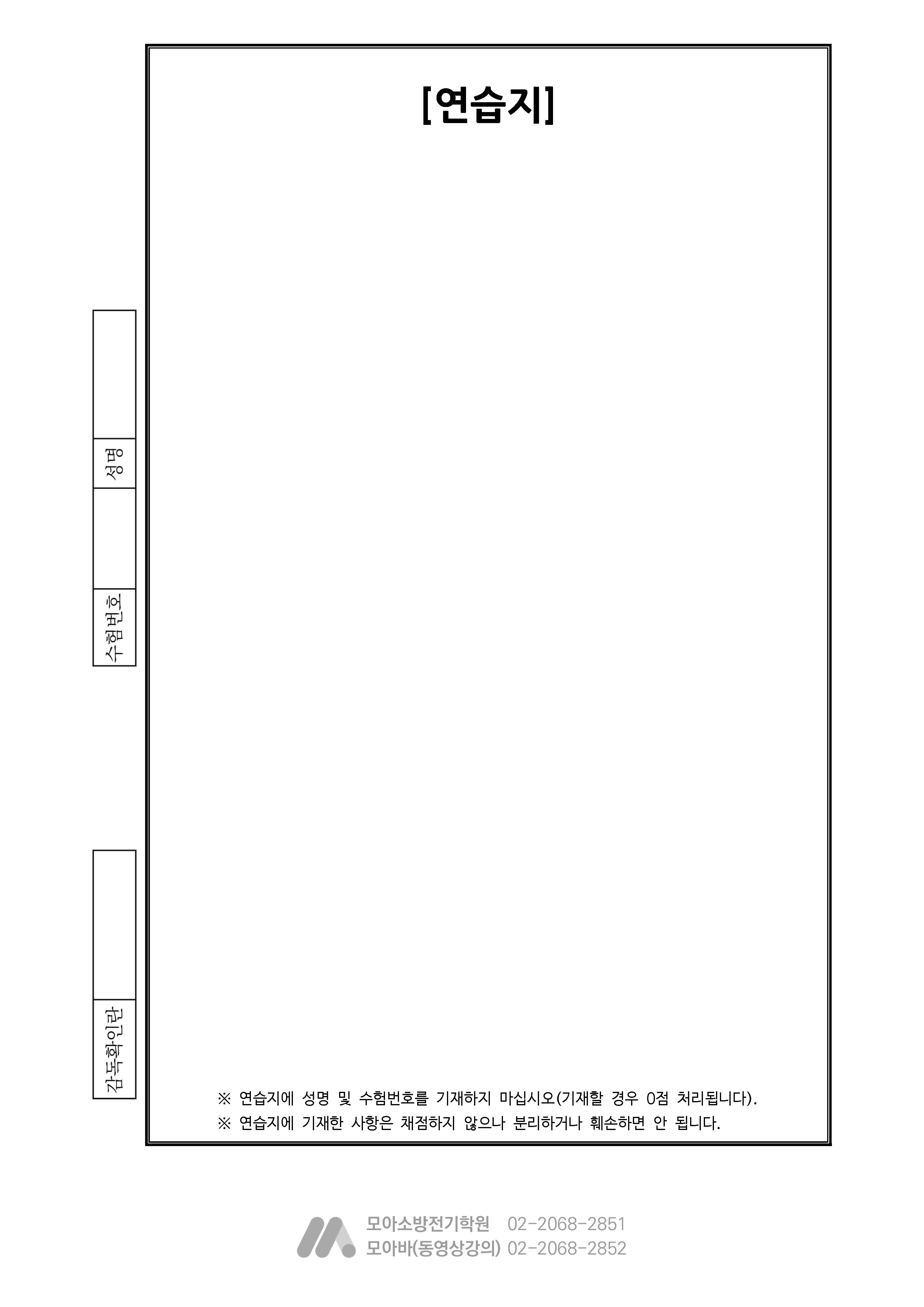 소방시설관리사 연습용 답안지(좌철/10부 묶음)